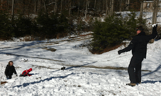 Our 13-year-old neighbor boy saw us having so much fun that he decided to come out and join us. More sledding and snowball fights ensued!
